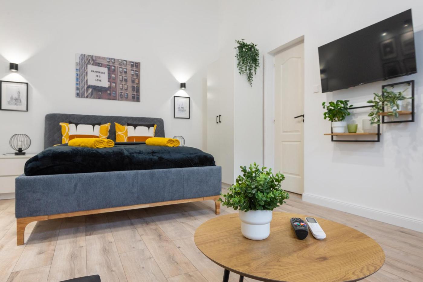 One-Bedroom Apartment. Boasting a private entrance, this air-conditioned apartment includes a kitchen, 1 bedroom and 1 bathroom with a shower and a hairdryer. In the well-equipped kitchen, guests will find a stovetop, a refrigerator, kitchenware and a microwave. The apartment offers soundproof walls, a wardrobe, an electric kettle, a flat-screen TV with streaming services, as well as ancourtyard view. The unit has 2 beds. ;