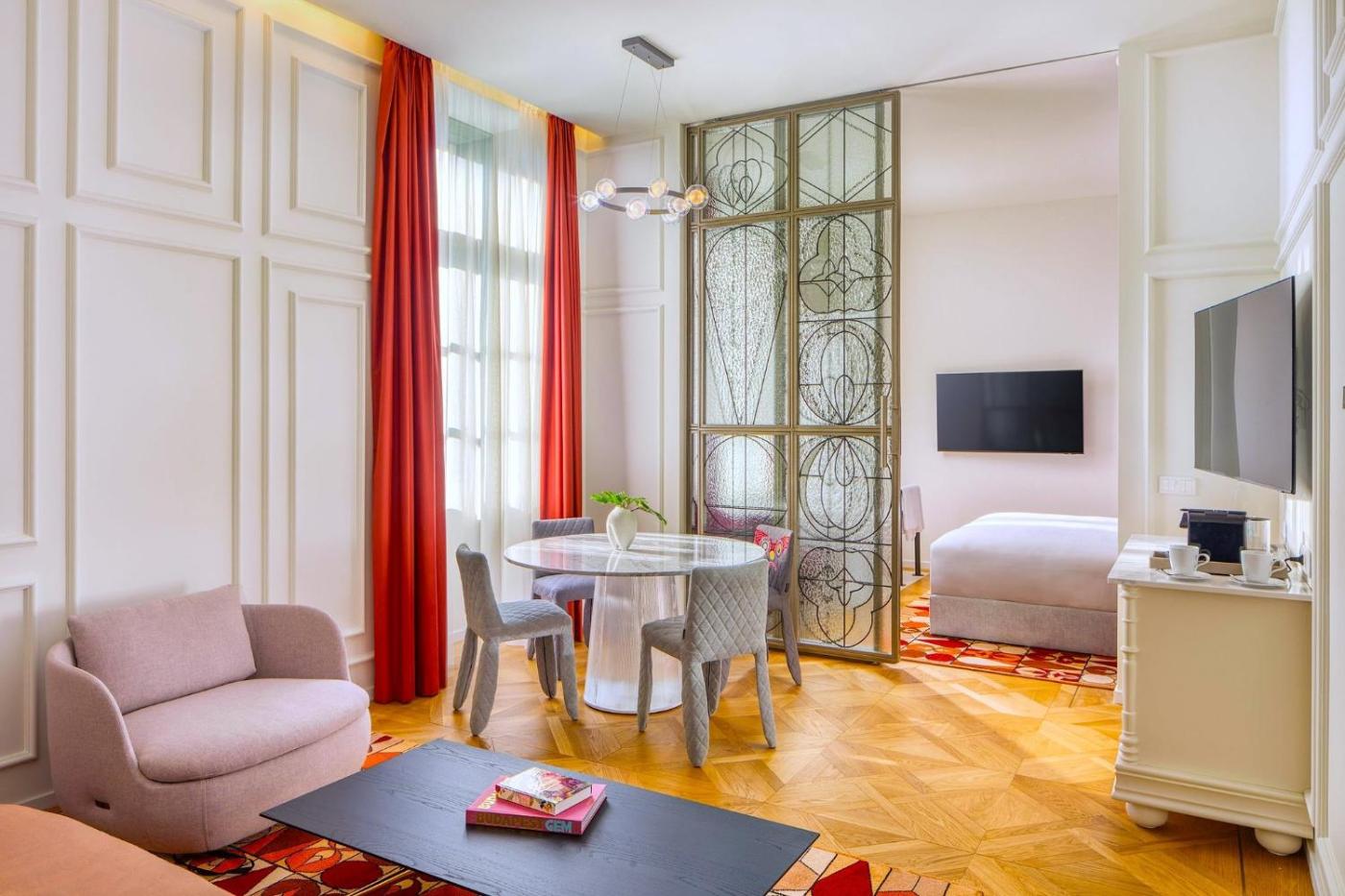 Cosmos Suite. Offering free toiletries and bathrobes, this suite includes a private bathroom with a bath, a hairdryer and slippers. The air-conditioned suite offers a flat-screen TV with streaming services, soundproof walls, a minibar, a tea and coffee maker as well as city views. The unit offers 1 bed. ;