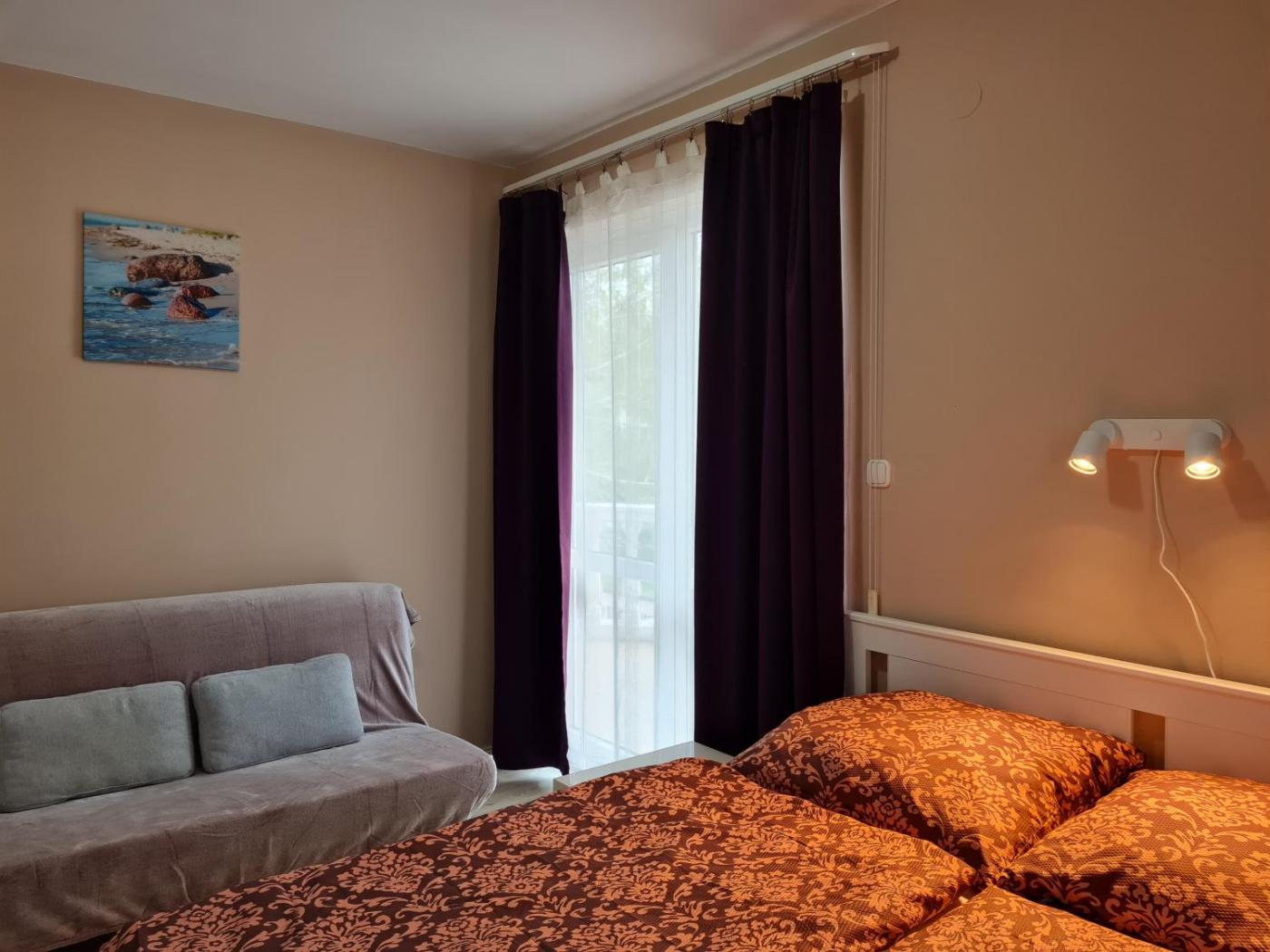 Double Room with Balcony. The room with a balcony offers views of Lake Balaton. It features a TV, a refrigerator and a private bathroom with a shower. The rooms are in the yellow building (Susanne House). ;