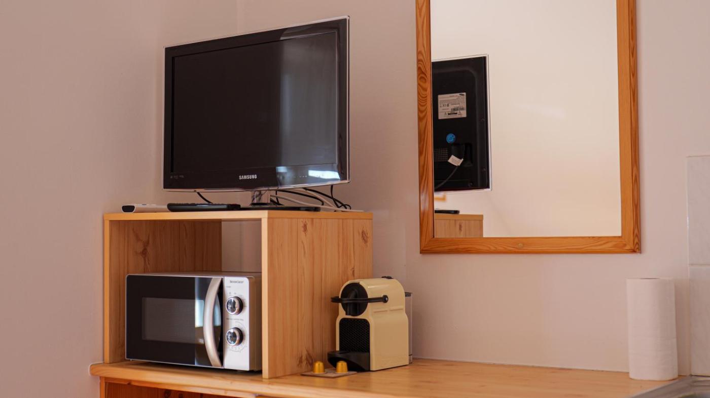One-Bedroom Apartment. Featuring 1 bedroom and 1 bathroom with a shower, this apartment offers a well-fitted kitchenette and a terrace. Guests can make meals in the kitchenette that is equipped with a stovetop, a refrigerator, kitchenware and a microwave. The air-conditioned apartment provides a flat-screen TV with satellite channels, a coffee machine, a wardrobe, a sofa as well as garden views. The unit has 1 bed. ;